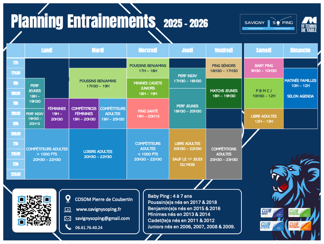 Planning entraînementS